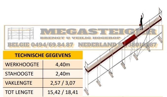 STALEN STEIGER 4.40m werkhoogte , lengte 18.42m